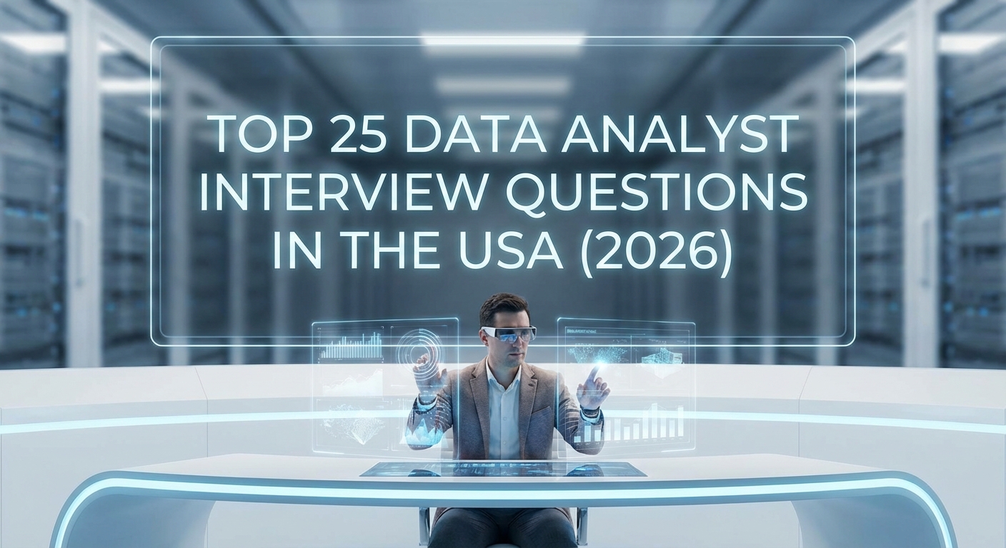 A curated list of data analyst interview questions in the USA for 2026, covering freshers, mid-level, and senior roles with practical answers and expert tips.